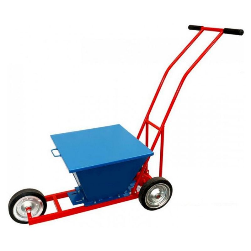 Wagen mit Stahlrahmen und Behälter für Kreidepulver.