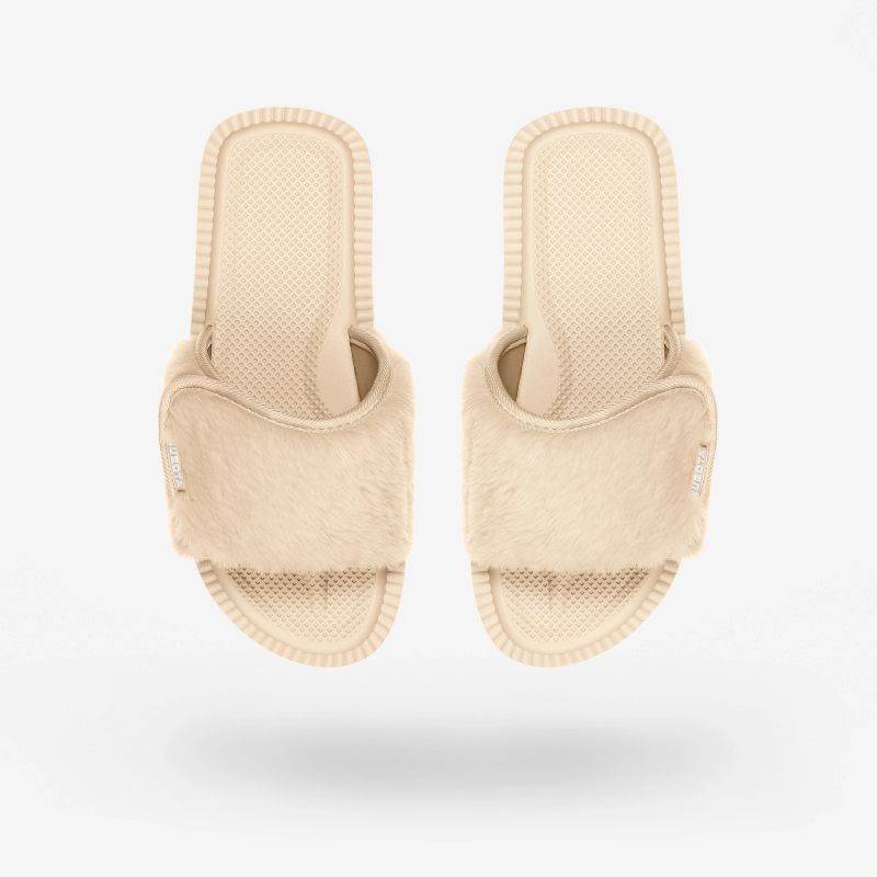 Kubota Flip-Flops mit Klettverschluss und beigem Fell