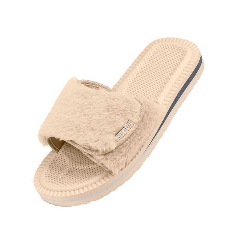 Kubota Flip-Flops mit Klettverschluss und beigem Fell K24AW-100-001-03-1