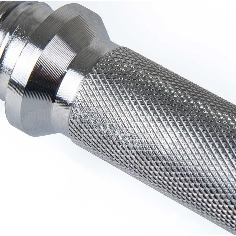 Der rutschfeste (geriffelte) Griffbereich mit speziellen Einkerbungen erhöht Ihre Sicherheit und sorgt für einen sicheren und komfortablen Halt, wodurch das Risiko des Abrutschens der Hantelstange minimiert wird . Gewindeklemmen halten die Gewichtsscheiben während des gesamten Trainings präzise fixiert. Dies gewährleistet eine gleichmäßige Lastverteilung und ein effektiveres Training.