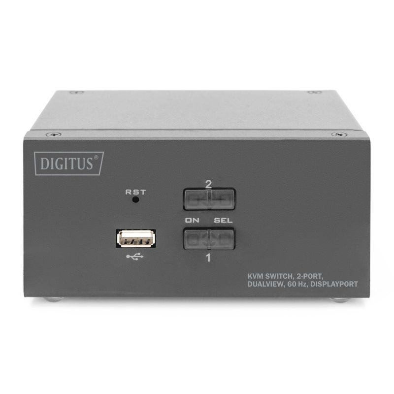 KVM-Switch, 2 Ports, 4K 60Hz, 4x DP IN, 2x DP OUT, 2x USB A, 2x Audio IN & OUT