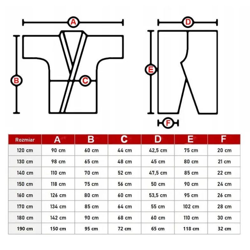 Karategi-Größentabelle: