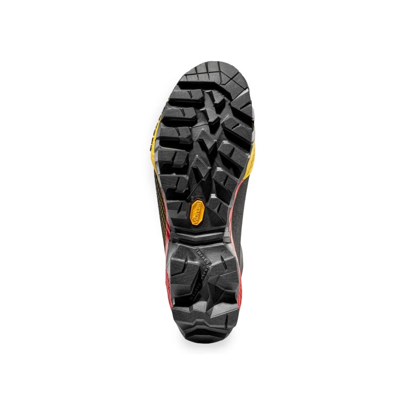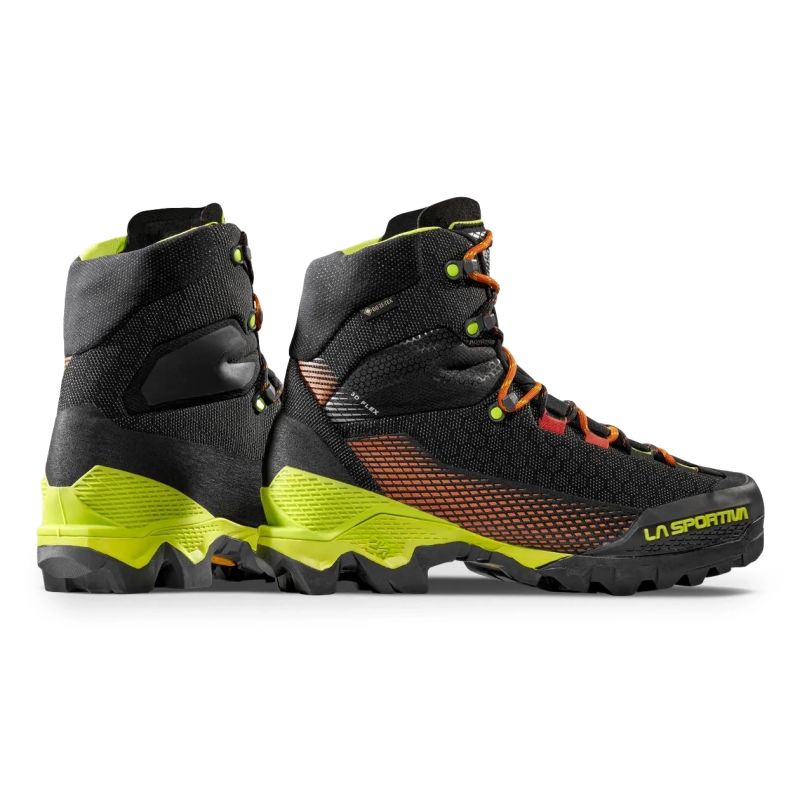 Der La Sportiva Aequilibrium ST GTX Carbon/Lime Punch ist ein technisches Trekking- und Alpinmodell für unterschiedliche Bedingungen – Klettersteige, Gletscher und felsige Zustiege. Das Obermaterial besteht aus wasserdichtem 60/6-Nylon mit HoneyComb Guard-Verstärkungen und verfügt über verstärkte TPU-Zehen- und Fersenschützer. Eine GORE-TEX Performance Comfort-Membran schützt vor Nässe und sorgt gleichzeitig für gute Atmungsaktivität. Die Innenseite ist mit einer „Balg“-Zunge (geklebt) ausgestattet, einem weichen Material, das den oberen Teil des Obermaterials bedeckt (Schneefang) und vor Schnee und Steinen schützt. Die „3D Flex System Evo“-Konstruktion gewährleistet Knöchelbeweglichkeit und bietet gleichzeitig hohen Schutz. Die Vibram SpringLug Tech-Außensohle mit Impact Brake System-Stollen sorgt für Traktion auf hartem und rutschigem Untergrund. Zusätzlich sind die Stiefel mit halbautomatischen Steigeisen kompatibel, was ihre Funktionalität unter alpinen Bedingungen erhöht. Ein halbes Paar wiegt ca. 630 g (entspricht ungefähr einer Standardgröße).