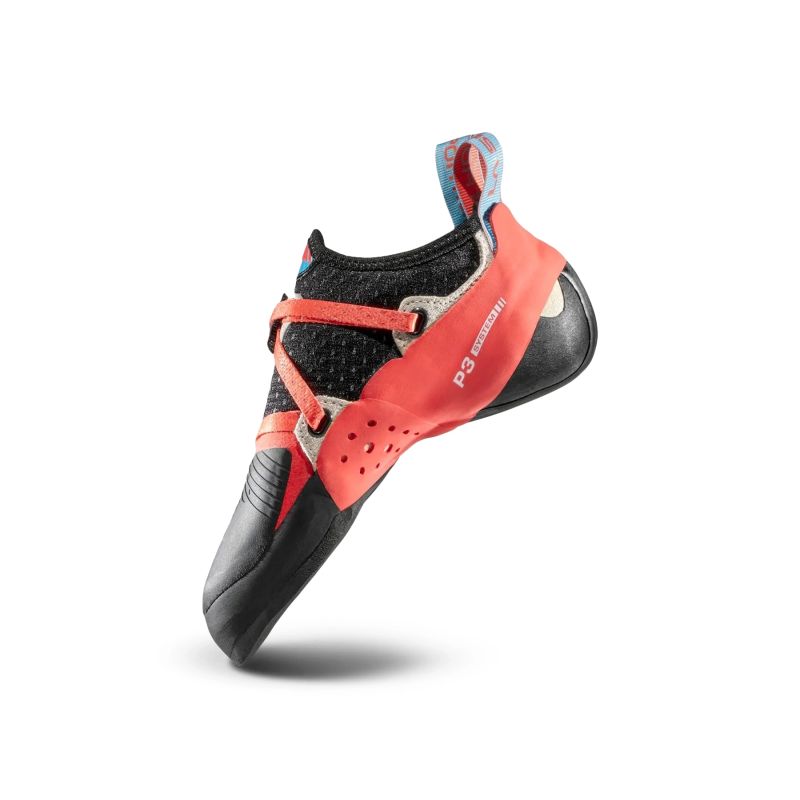 Das aggressive, asymmetrische Profil konzentriert die Kraft im Vorfußbereich und erhöht so die Präzision bei kleinen Schritten und in Felsspalten. Die charakteristische, geschwungene Form wird durch die P3-Technologie (Permanent Power Platform) erhalten, die die technischen Eigenschaften des Schuhs auch nach längerem Gebrauch bewahrt.