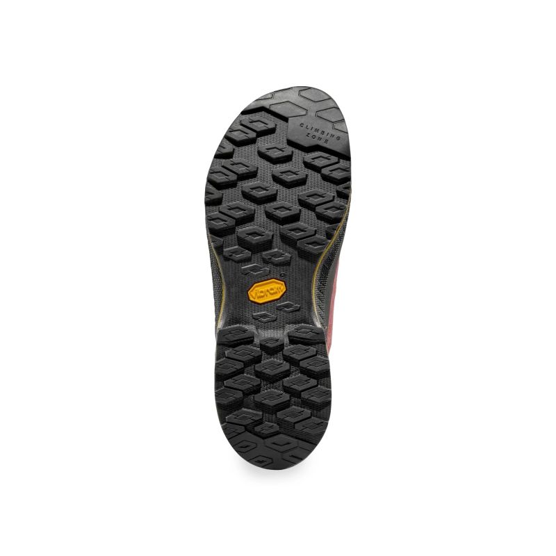 Die Vibram MegaGrip-Sohle mit Impact Brake System und Climbing Zone-Zehenprofil sorgt für kraftvollen Vortrieb und Kontrolle, selbst auf nassem Fels. Das Resole Platform™-System ermöglicht ein austauschbares Profil und verlängert so die Lebensdauer des Schuhs. Das von Kletterschuhen inspirierte Schnürsystem ermöglicht eine präzise Passform. Mit einem Gewicht von ca. 690 g pro Paar (Damengröße) hat dieser Schuh ein angemessenes Gewicht für diese Eigenschaften. Ideal für Zustiege, Klettersteige und leichtes Klettern, wo mehr Traktion als bei herkömmlichen Wanderschuhen erforderlich ist.