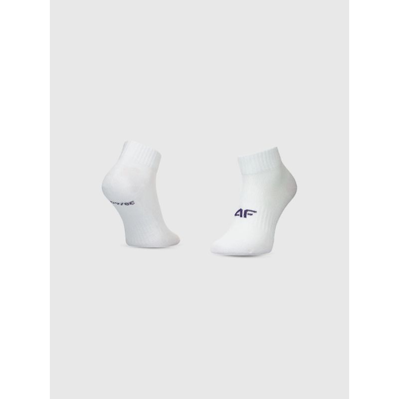 Das knöchellange Design bietet zusätzlichen Schutz für den Fuß, während das flexible Material eng anliegt und sich bei Bewegungen nicht verrutscht. Sie bestehen aus 73 % Baumwolle und sind weich, strapazierfähig und angenehm anzufassen, während 24 % Polyamid die Dehnbarkeit und Knitterfestigkeit erhöhen. Das 4F-Logo am Mittelfuß unterstreicht den sportlichen Charakter.