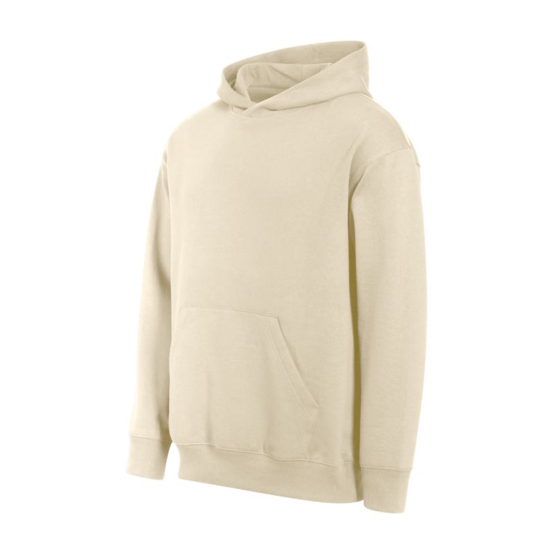Frottee, innen angeraut, 60 % Baumwolle, 40 % Polyester (Zusammensetzung kann variieren – Farbe 12: 75 % Baumwolle, 25 % Polyester), ohne Etikett – bereit für Rebranding, lockere Passform mit Seitennähten, gefütterte Kapuze, Etikett in neutraler Größe am hinteren Saum, innenliegender Saum mit Band verstärkt, verlängerte Schulterpartie, Kängurutasche, Saum und Ärmelbündchen aus 2:2-Rippstrick mit 5 % Elastan, innen angeraut.