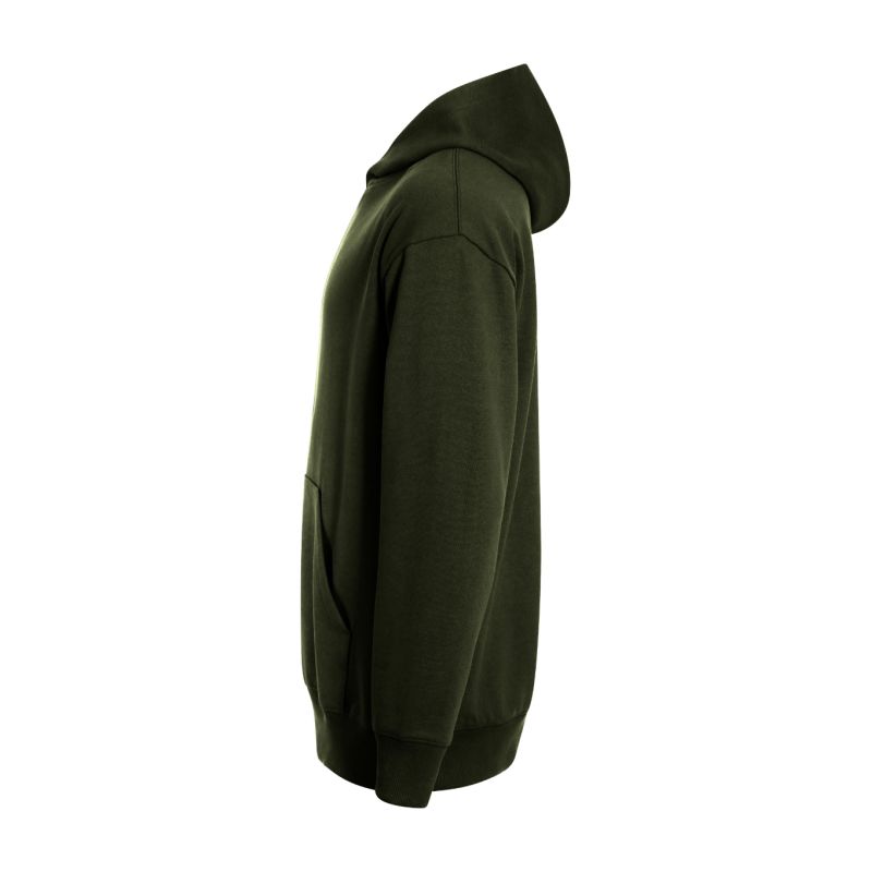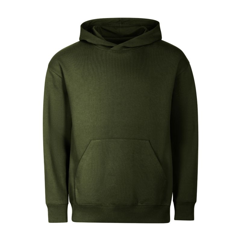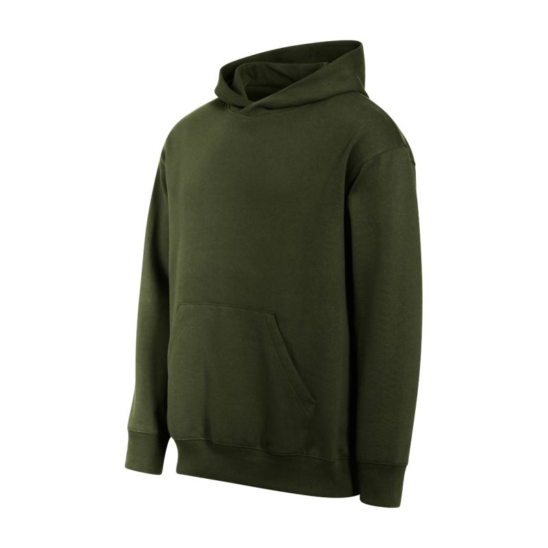 Frottee, innen angeraut, 60 % Baumwolle, 40 % Polyester (Zusammensetzung kann variieren – Farbe 12: 75 % Baumwolle, 25 % Polyester), ohne Etikett – bereit für Rebranding, lockere Passform mit Seitennähten, gefütterte Kapuze, Etikett in neutraler Größe am hinteren Saum, innenliegender Saum mit Band verstärkt, verlängerte Schulterpartie, Kängurutasche, Saum und Ärmelbündchen aus 2:2-Rippstrick mit 5 % Elastan, innen angeraut.