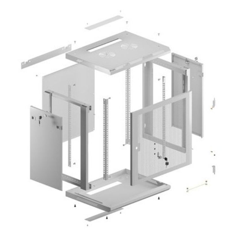 11. Lanberg 19" 12U 600X450 grauer Wand-RACK-Installationsschrank mit perforierten Türen (flach verpackt)