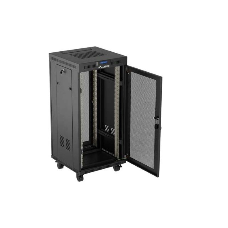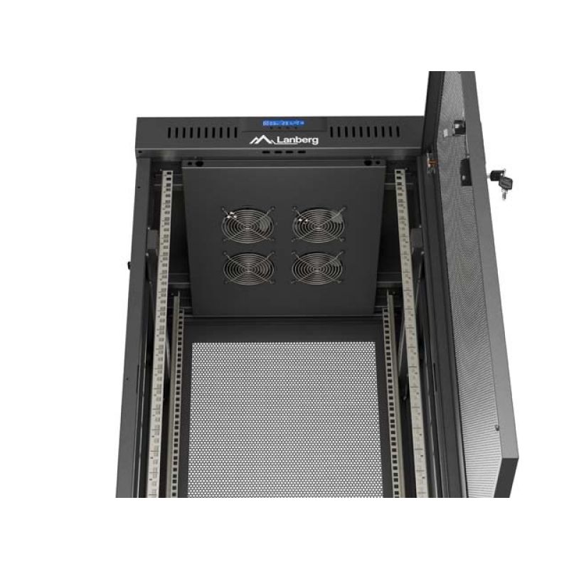 13. LANBERG Bodenschrank 19" 24U 600x600 Schwarz, perforierte Tür, LCD (flach verpackt) V2