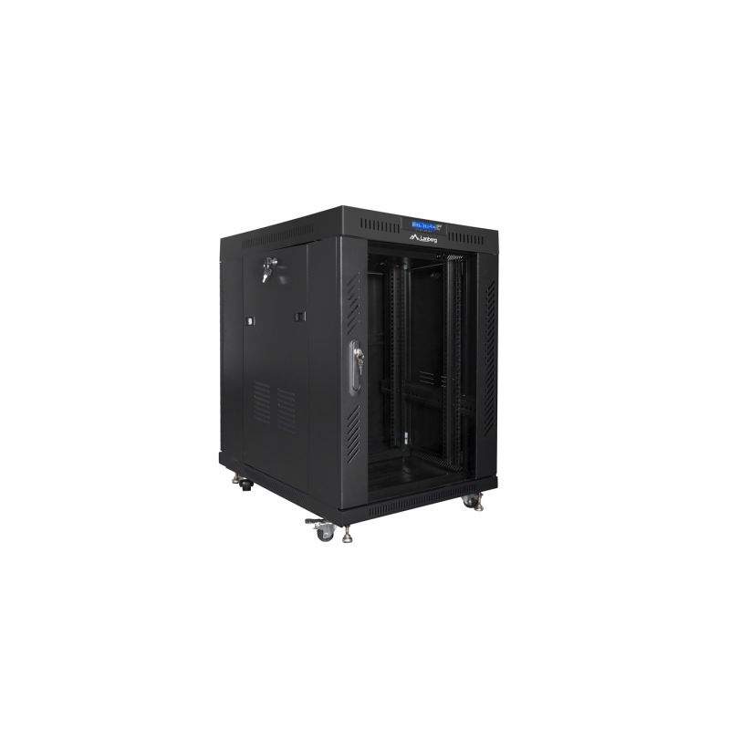 LANBERG Standschrank 19" 15U 800X1000 Glastür LCD Schwarz FF01-8015-12BL (flach verpackt)