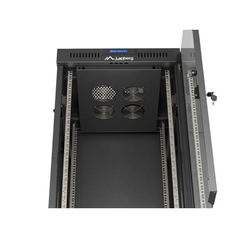 8. LANBERG Standschrank 19" 24U 600x600 Schwarze Glastür LCD (Flatpack) V2