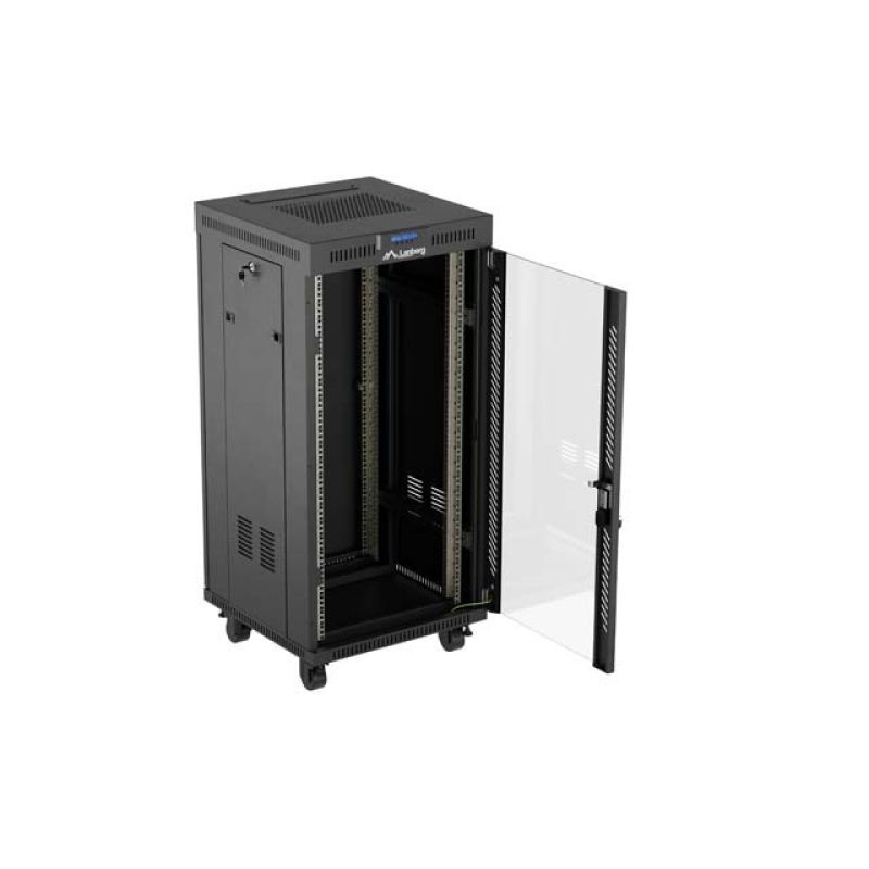 2. LANBERG Standschrank 19" 24U 600x600 Schwarze Glastür LCD (Flatpack) V2