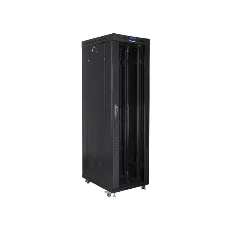 LANBERG Standschrank 19" 42U 600X1000 Glastür LCD Schwarz FF01-6042-12BL (Flachverpackung)