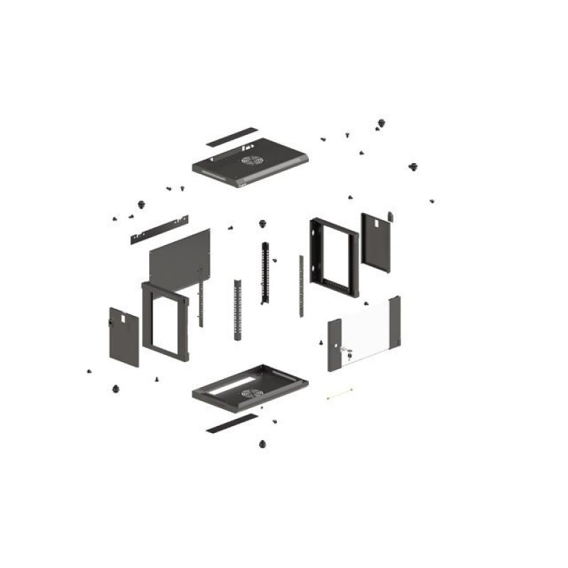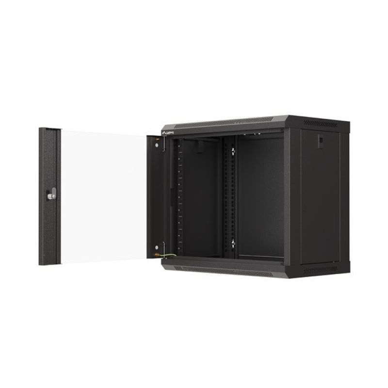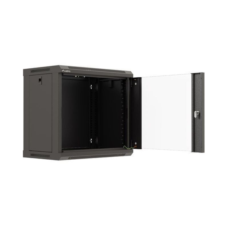 24. LANBERG Wandregalschrank 19" 9U 540x350 Schwarze Glastür (Flachverpackung)
