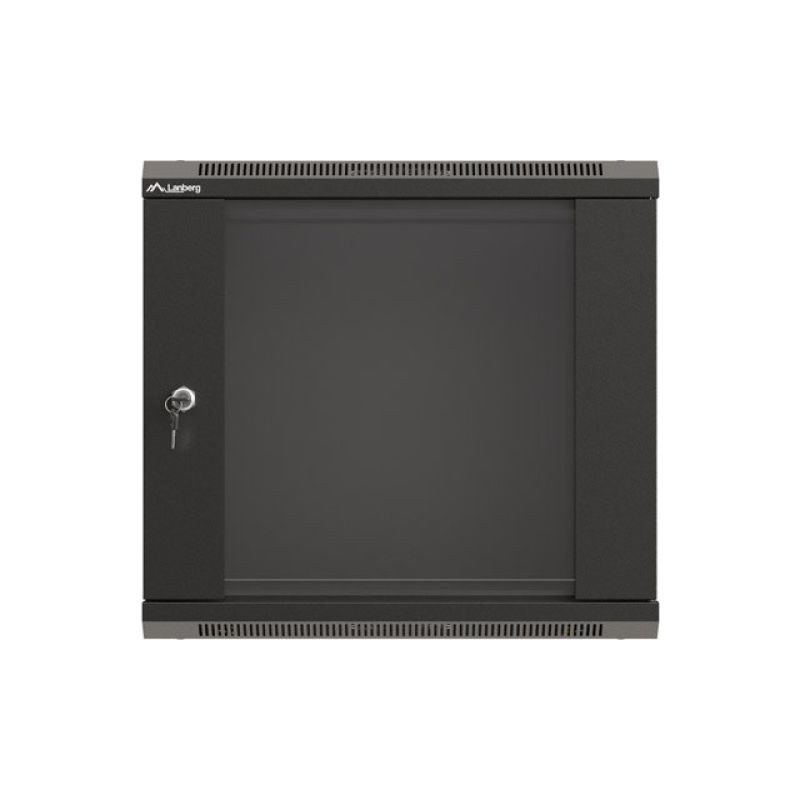 12. LANBERG Wandregalschrank 19" 9U 540x350 Schwarze Glastür (Flachverpackung)