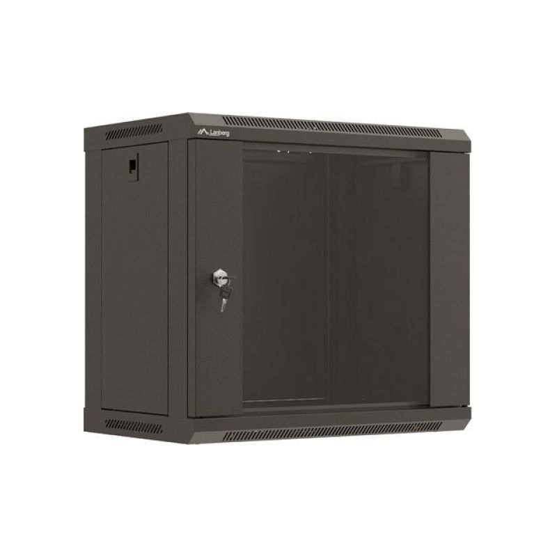 25. LANBERG Wandregalschrank 19" 9U 540x350 Schwarze Glastür (Flachverpackung)
