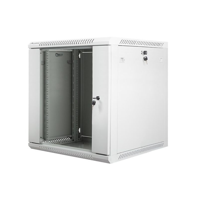 Lanberg WF01-6612-10S Rack-Schrank (12 HE; 635 mm / 600 mm / 600 mm; Wandmontage; Glas; 19 Zoll; grau)