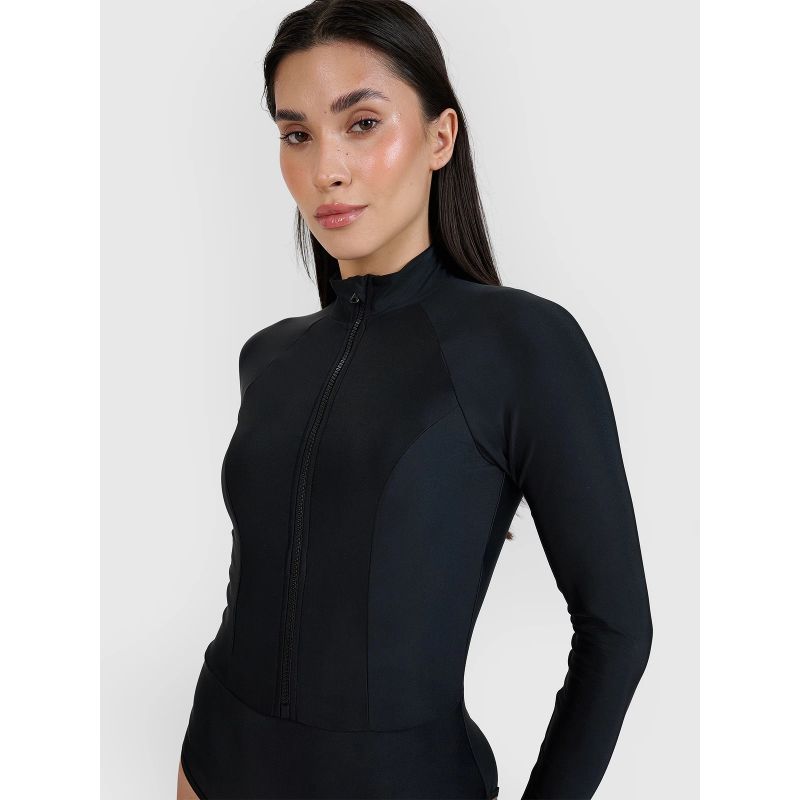 Dieser einteilige Langarm-Badeanzug für Damen ist eine ausgezeichnete Wahl für Frauen, die bei Sommeraktivitäten Wert auf Komfort, Funktionalität und modernes Design legen. Er eignet sich perfekt zum Freizeitschwimmen, Entspannen am Strand und anderen alltäglichen Outdoor-Aktivitäten.