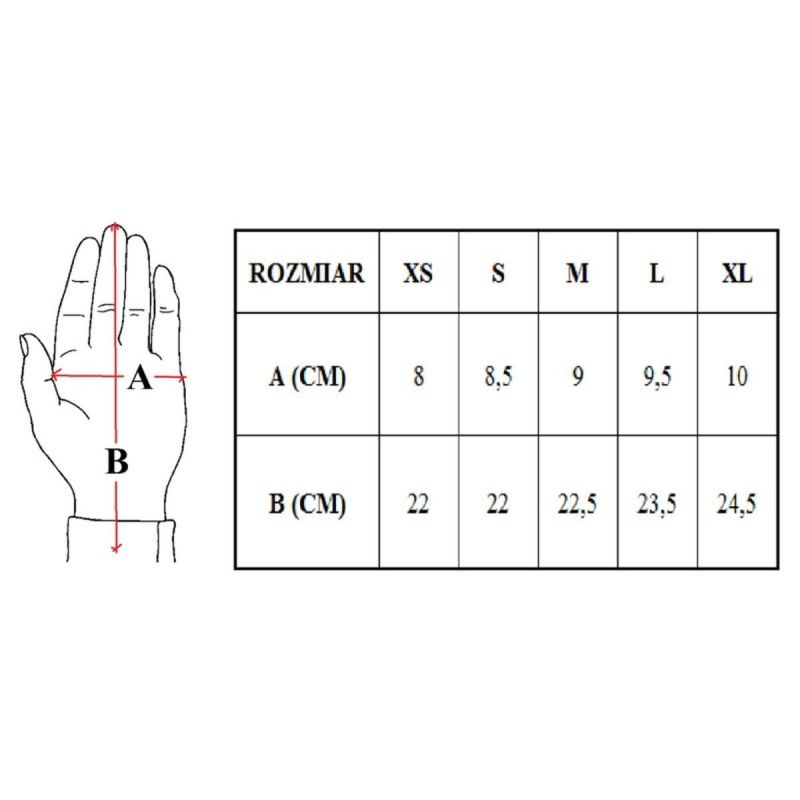 Die Handschuhe sind in den Größen XS, S, M, L und XL erhältlich. Die folgende Tabelle hilft Ihnen bei der Auswahl der richtigen Größe.