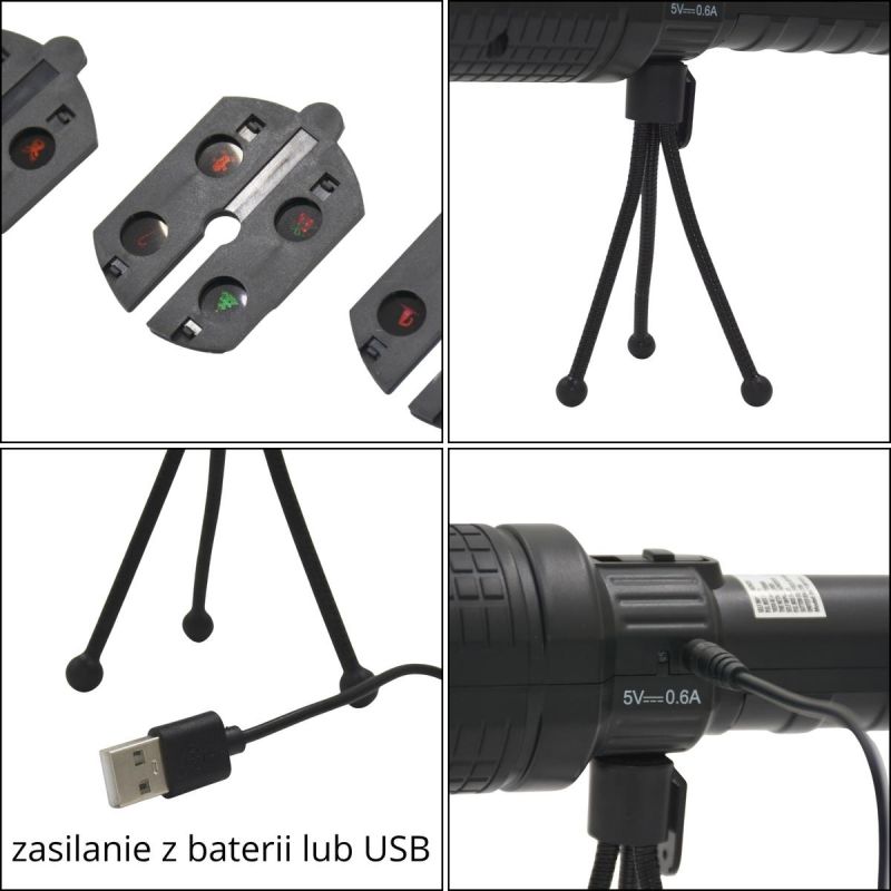 - Ausgestattet mit 4 austauschbaren Projektionsfolien mit unterschiedlichen Mustern