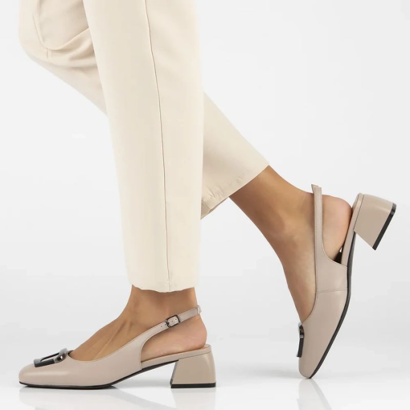 Schuhe mit einem bequemen Absatz und einem originellen Ornament passen zu fast allen Damenstilen.