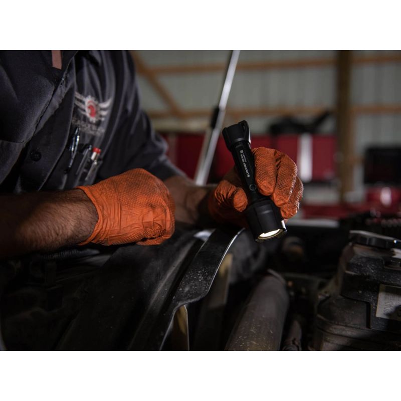 Die P5R Work bietet außergewöhnliche Lichtleistung in einem kompakten, eleganten Gehäuse. Dank Smart Light Technologie ist sie dimmbar und programmierbar. Das patentierte Advanced Focus System von Ledlenser sorgt für präzises Spot- oder Ambientelicht, wo immer es benötigt wird. Die P5R Work verfügt über Gummiabdeckungen, besondere Beständigkeit gegen Chemikalien und Flüssigkeiten sowie einen Schutzschirm. Die Flex Sealing-Technologie verhindert das Eindringen von Wasser und Staub. Das praktische Magnetic Charge System ermöglicht jederzeit einfaches und sicheres Laden. Diese Eigenschaften machen die P5R Work zur idealen Taschenlampe für anspruchsvolle Arbeitsumgebungen.