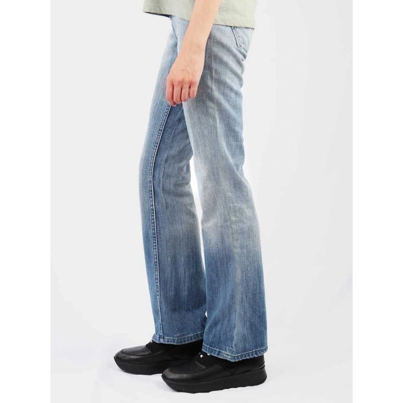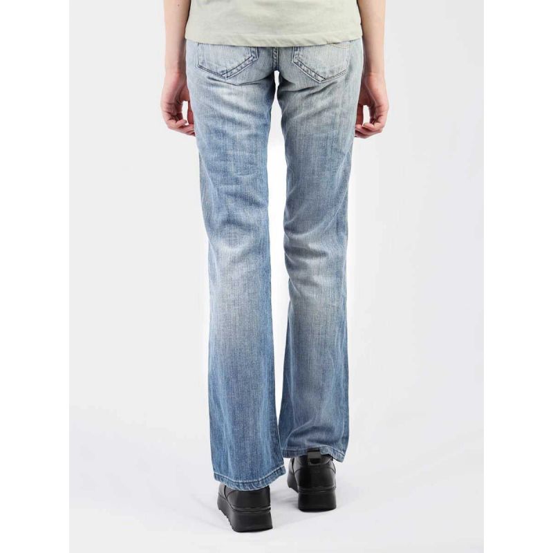 Damenjeans mit niedriger Leibhöhe und ausgestelltem Bein. Reißverschluss. Leder-Logo-Aufnäher am hinteren Hosenbund.