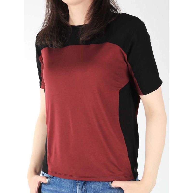 Damen-T-Shirt in Schwarz und Burgunderrot. Einfaches, klassisches Design. Kurze Ärmel.