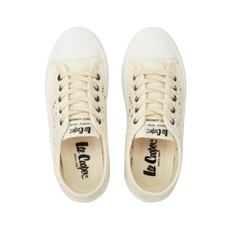 Lee Cooper Damenschuhe, Sport-Sneaker, beige Plateau, Schnürung