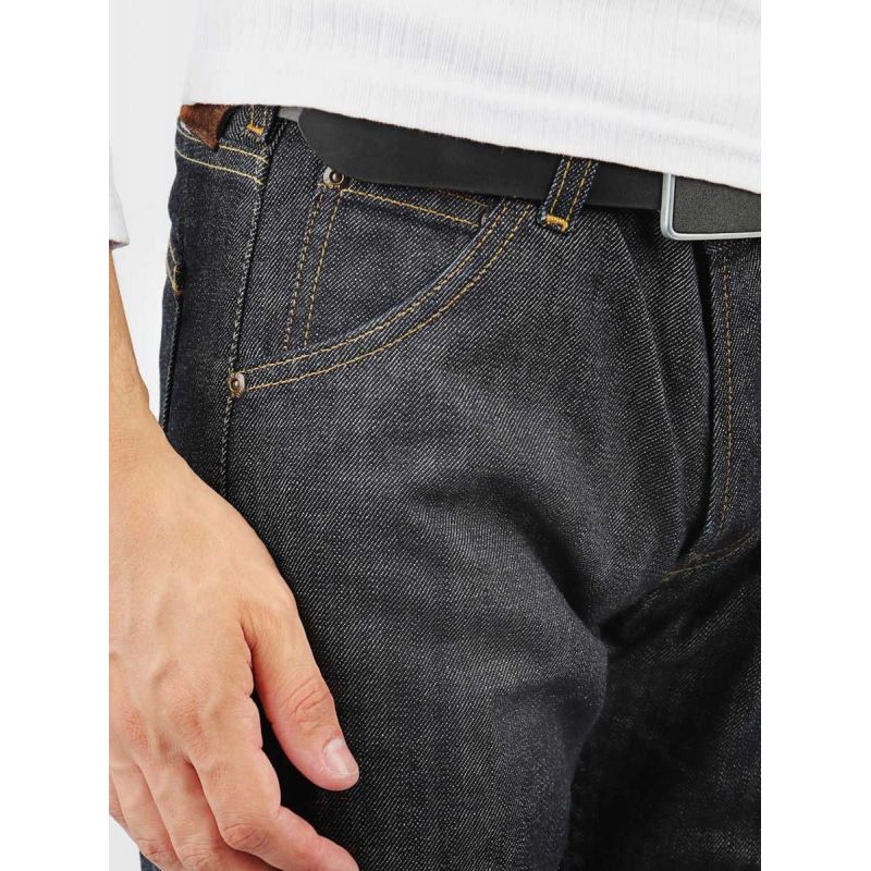 Herrenjeans mit weitem Bein und niedriger Leibhöhe. Knopfverschluss. Leder- und Pelzaufnäher mit dem Herstellerlogo auf der Rückseite. Material: 100% Baumwolle