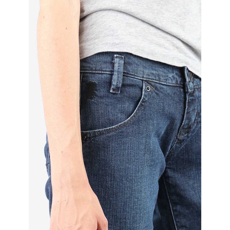 Dunkelblaue Damenjeans aus Denim. Gerades Bein. Knopf- und Reißverschluss.