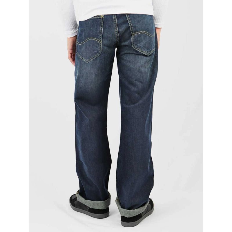 Herrenjeans mit hoher Taille und weitem Bein und Reißverschluss. Auf der Rückseite befindet sich ein Markenlogo-Aufnäher. Material: 100% Baumwolle