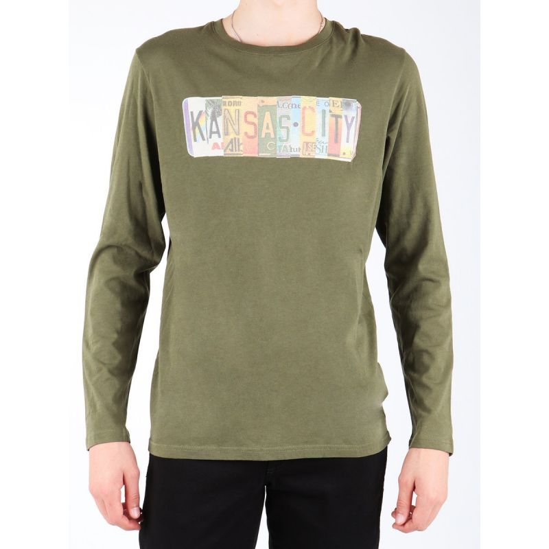 -Olivfarbenes Langarm-T-Shirt -Druck auf der Vorderseite -Material: 100% Baumwolle