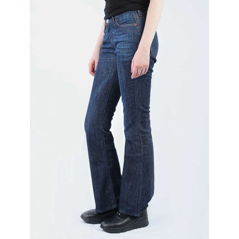 Damenjeans mit normaler Taille und weitem Bein, Reißverschluss und Knopfverschluss. Auf der Rückseite des Hosenbunds befindet sich ein markanter Levi's-Aufnäher.