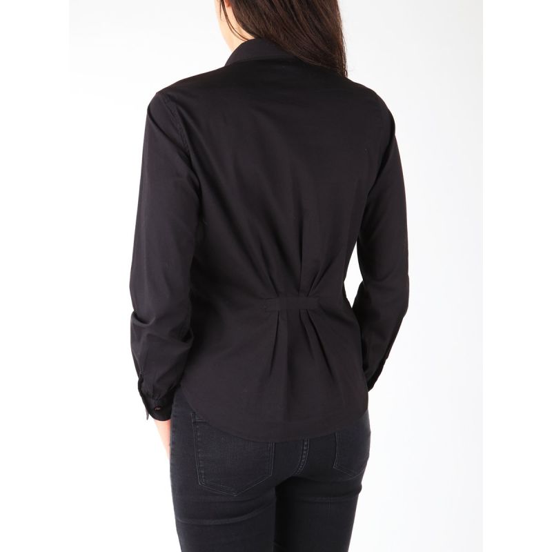 Dieses vielseitige schwarze Damenhemd mit Button-Down-Kragen eignet sich perfekt für eine Vielzahl von Outfits. Material: 97% Baumwolle/ 3% Elasthan