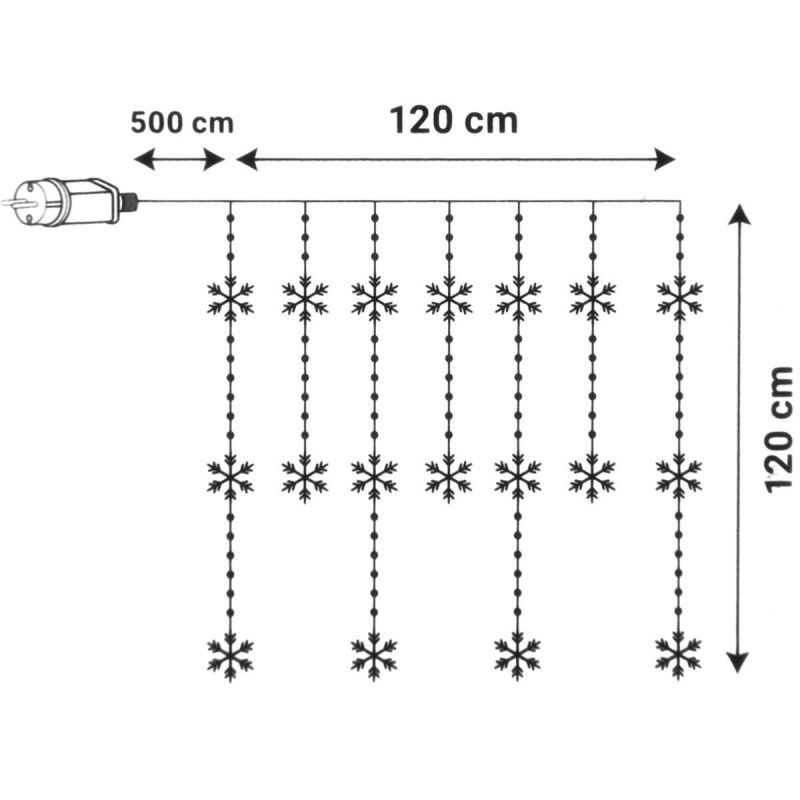 Lassen Sie Ihr Zuhause in festlichem Glanz erstrahlen! Unser Lichtervorhang „Weihnachtsbaum“ (120 x 120 cm) mit 232 warmweißen LEDs in Schneeflockenform vereint Stil, Funktionalität und Magie. Wählen Sie zwischen Sternen- oder Schneeflockenmuster und genießen Sie das sanfte Leuchten, das Ihr Zuhause in warmes und weihnachtliches Licht taucht.