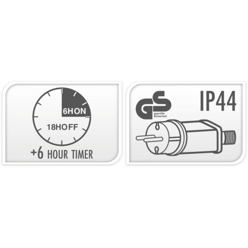 - Mit dem integrierten 8/16-Stunden-Timer können Sie die Zeiten auswählen, zu denen die Lichter eingeschaltet sein sollen.