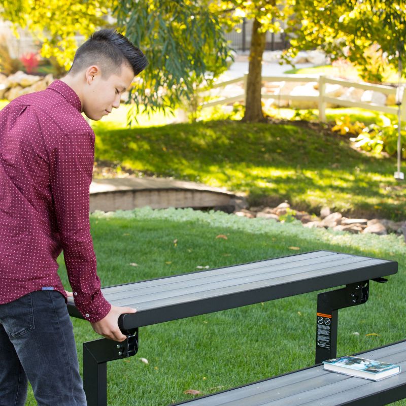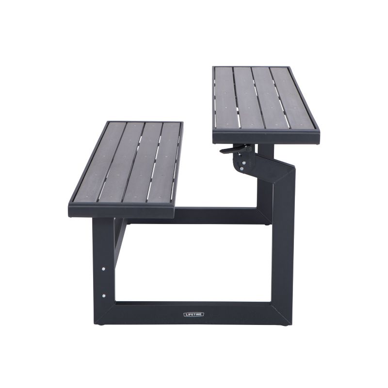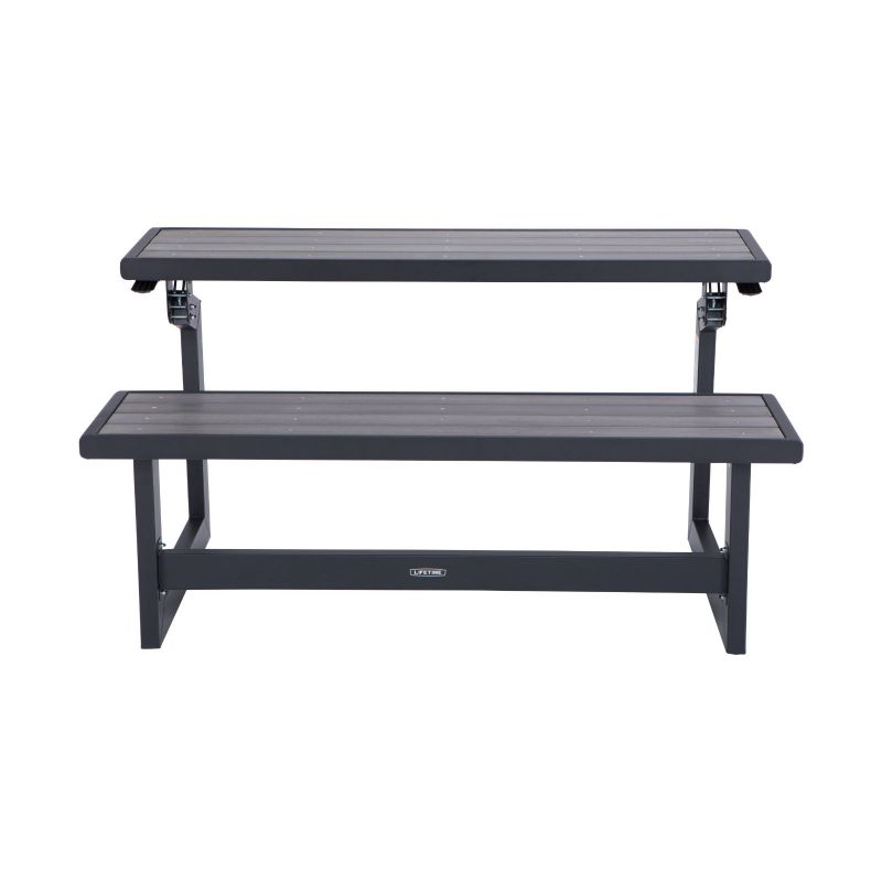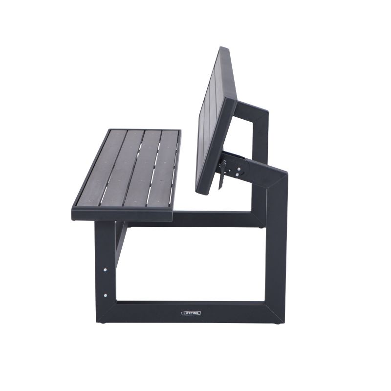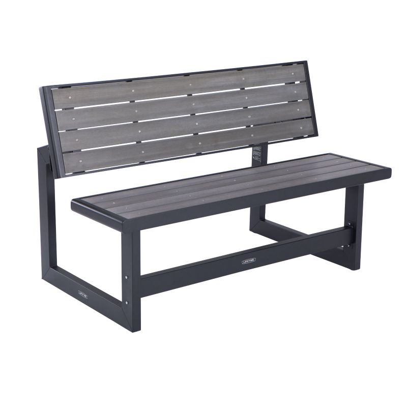 - Diese Lifetime Gartenbank ist die perfekte Ergänzung für Ihren Garten und schafft einen entspannenden Ort für entspannte Nachmittage. Hergestellt aus wetterbeständigem Polystyrol mit Holzoptik, lässt sich die Rückenlehne im Handumdrehen in einen Tisch verwandeln. Die Bank ist UV-geschützt, sodass sie nicht ausbleicht, reißt oder abblättert. Im Gegensatz zu Holzbänken splittert Polystyrol nicht und muss nicht gestrichen oder lackiert werden. Der Stahlrahmen ist mit einer Korrosionsschutzbeschichtung versehen, sodass die Bank jahrelang hält.