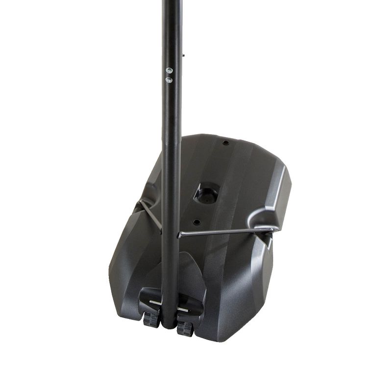 Der runde Mast mit 7,62 cm Durchmesser besteht aus drei Teilen. Er ist aus pulverbeschichtetem Stahl gefertigt und mit einer speziellen wasserfesten Beschichtung versehen. Der Mast steht auf einem tragbaren Sockel, der mit Sand oder Wasser gefüllt für sicheren Stand sorgt. Zement ist nicht erforderlich!