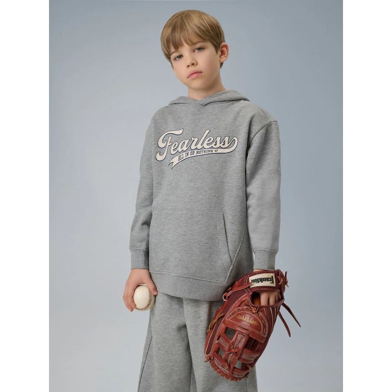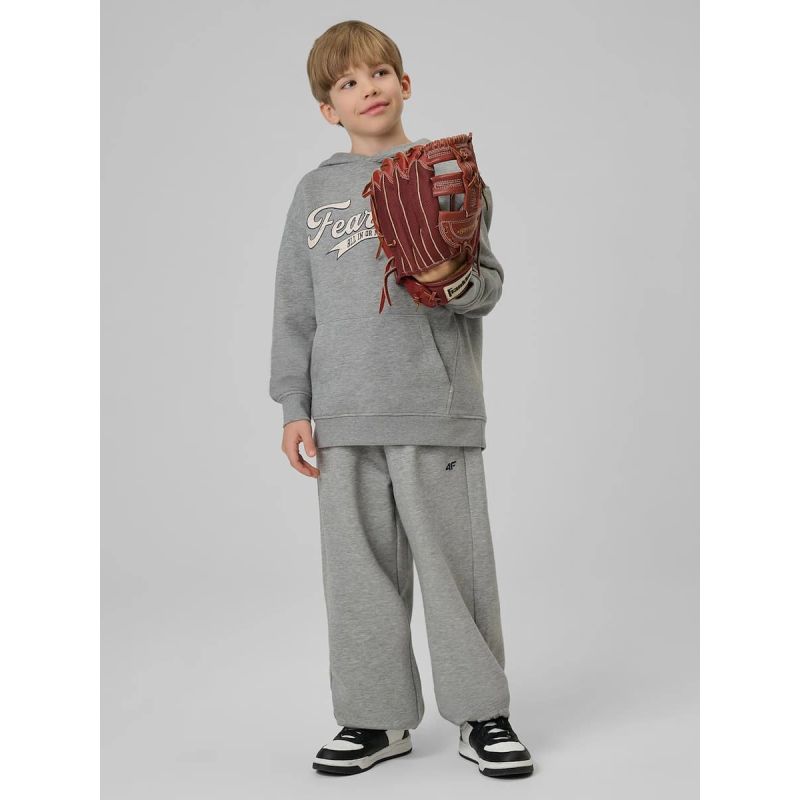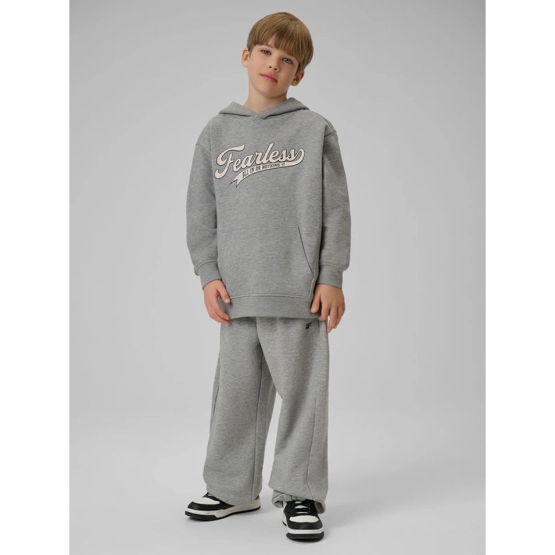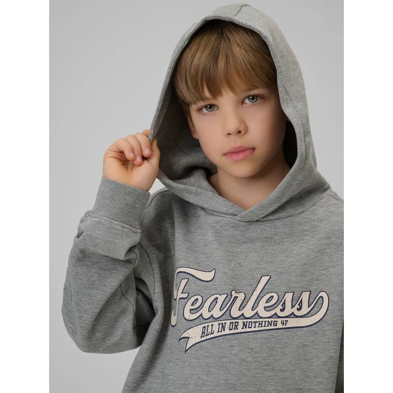 Die integrierte, nicht verstellbare Kapuze schützt vor Kälte, während der lockere Schnitt volle Bewegungsfreiheit ermöglicht und uneingeschränkte Bewegungsfreiheit bei Aktivitäten gewährleistet. Der normale Hüftschnitt sorgt für bequemen Tragekomfort, und offene Taschen bieten praktischen Stauraum für Kleinigkeiten oder wärmen die Hände. Innerhalb der Kinderkollektionen von 4F ist dieses Sweatshirt eine praktische Option für Kinder, die einen bequemen Alltags-Pullover benötigen.