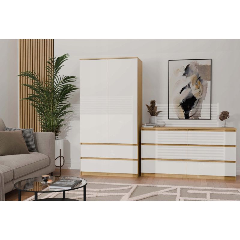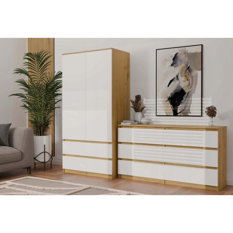 11. M6 MALWA Kommode 140 cm 6 Schubladen Kunst/Weiß Set