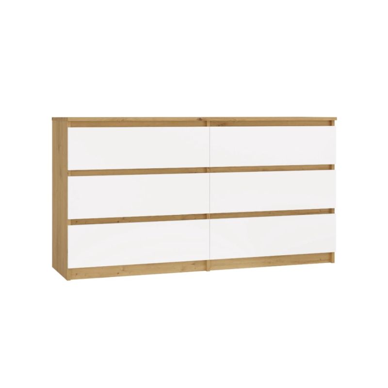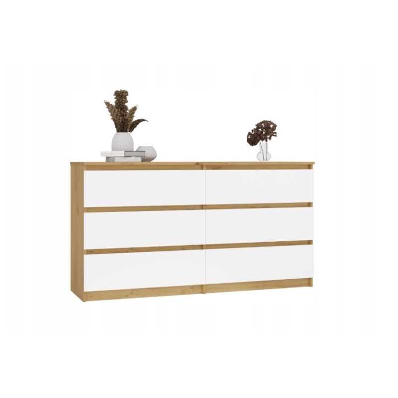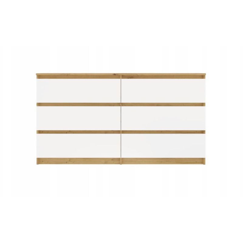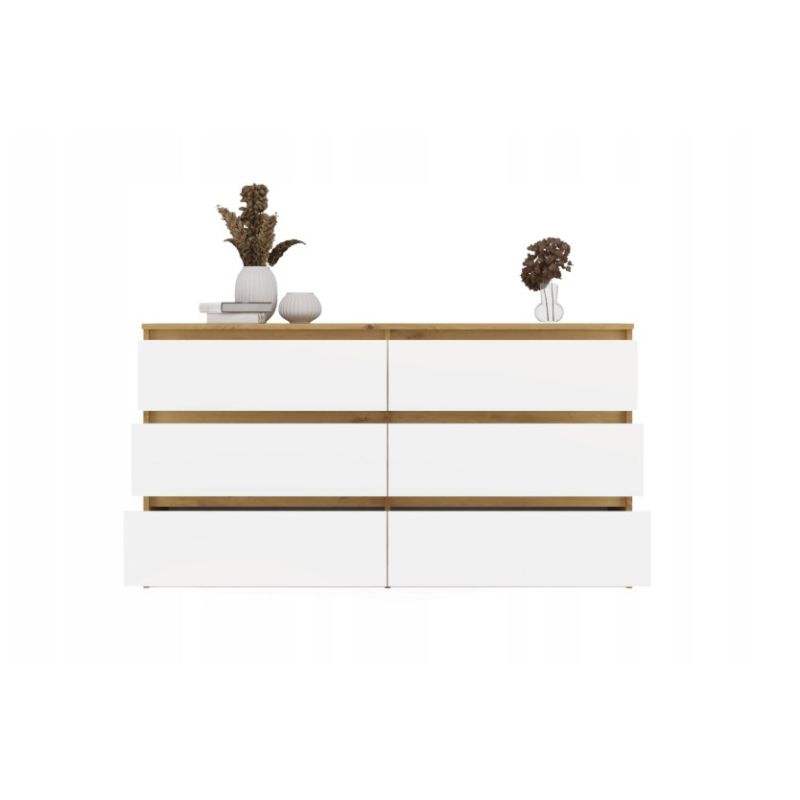 M6 MALWA Kommode 140 cm 6 Schubladen Kunst/Weiß Set