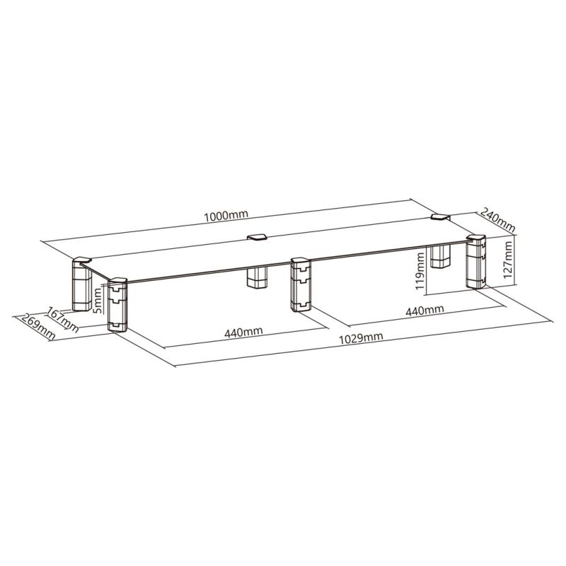 4. Maclean Doppelmonitorständer, max. 20 kg, gehärtetes Glas, (1029 x 285 x 127 mm), MC-936