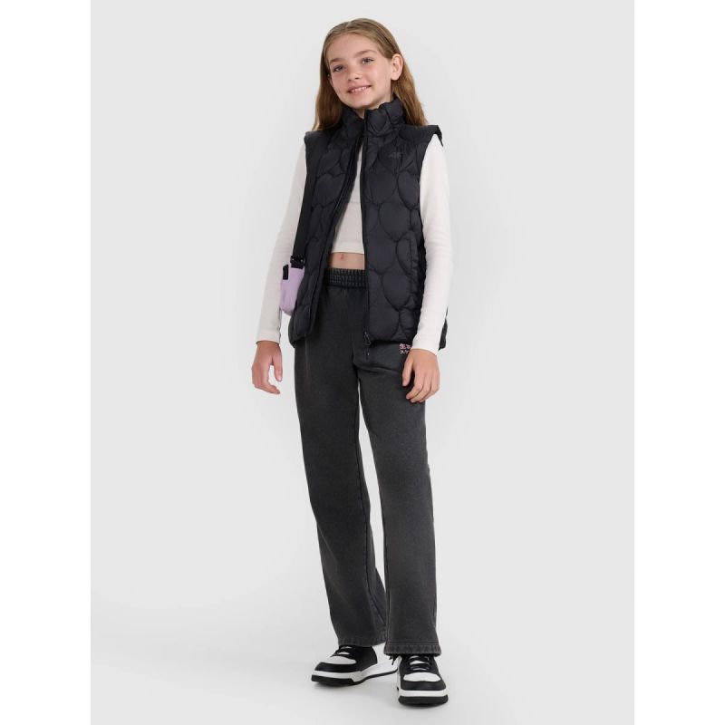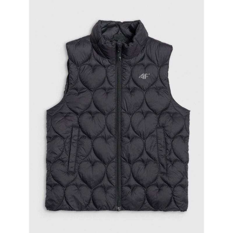 Diese gesteppte Mädchenweste ist die perfekte Ergänzung für wärmere, bewölkte Tage in der Übergangszeit. Die leichte Polyesterisolierung wärmt angenehm, ohne zu beschweren, während die wasserabweisende Beschichtung die Feuchtigkeitsaufnahme reduziert und vor leichtem Regen schützt. Gesteppte Einsätze isolieren die Wärme, und die dekorative Herzsteppung verleiht der Weste einen charmanten, mädchenhaften Touch. Der lockere Schnitt und die normale Hüftlänge sorgen für hohen Tragekomfort im Alltag, während die integrierte Kapuze und der hohe Kragen zusätzlichen Schutz vor Kälte bieten. Ein Reißverschluss mit Windschutzleiste minimiert Wärmeverlust, und in zwei Seitentaschen können die Hände gewärmt oder kleine Gegenstände verstaut werden. Diese leichte, praktische und außergewöhnlich charmante Weste ist ideal für aktive Mädchen.