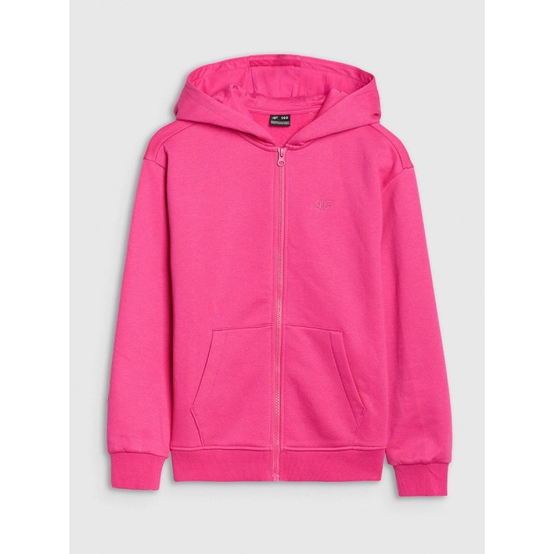 Der 4F Mädchen-Kapuzenpullover mit Reißverschluss ist ein bequemes und vielseitiges Kleidungsstück, perfekt für lässige Alltagsoutfits und sportliche Aktivitäten . Der Oversized-Schnitt fällt locker und sorgt für optimale Bewegungsfreiheit und hohen Tragekomfort. Die normale Hüftlänge macht den Pullover praktisch und vielseitig kombinierbar. Hergestellt aus weichem Single-Jersey-Stoff mit glatter Oberfläche, ist er dehnbar und fühlt sich angenehm auf der Haut an. Das durchschnittliche Gewicht von 280 g/m² bietet ein optimales Verhältnis von Leichtigkeit und Wärmekomfort. Die einseitig angeraute Innenseite sorgt für zusätzliche Wärme und macht den Pullover ideal für kühlere Tage. Der hohe Baumwollanteil (80 %) garantiert natürlichen Tragekomfort, während der Polyesteranteil (20 %) die Strapazierfähigkeit erhöht und die Formbeständigkeit auch bei starker Beanspruchung gewährleistet. Funktionelle Details wie die integrierte Kapuze , der Einwegreißverschluss , zwei Seitentaschen sowie elastische Bündchen und ein elastischer Saum machen dieses Modell zu einer praktischen Wahl für jeden Tag.