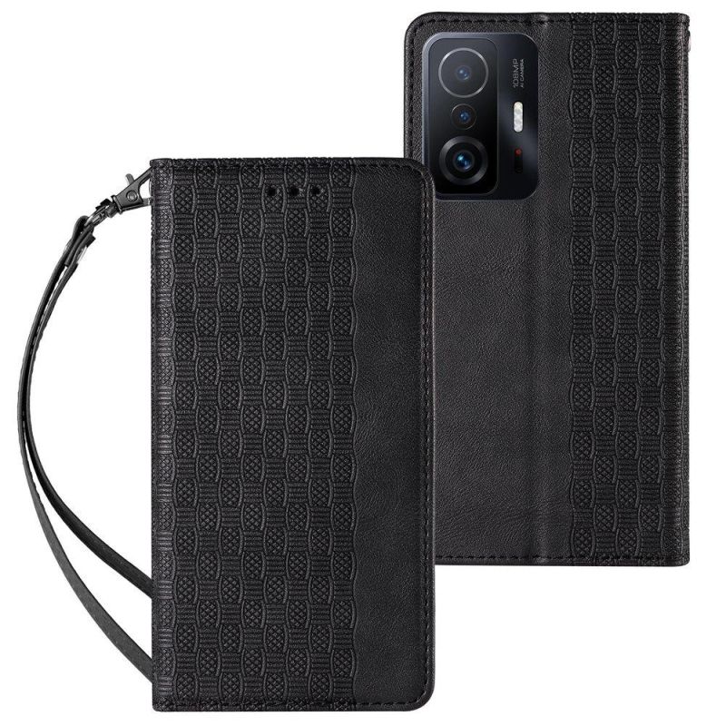 Magnetband-Hülle für Samsung Galaxy A12 5G-Brieftasche + Mini-Lanyard-Anhänger Schwarz