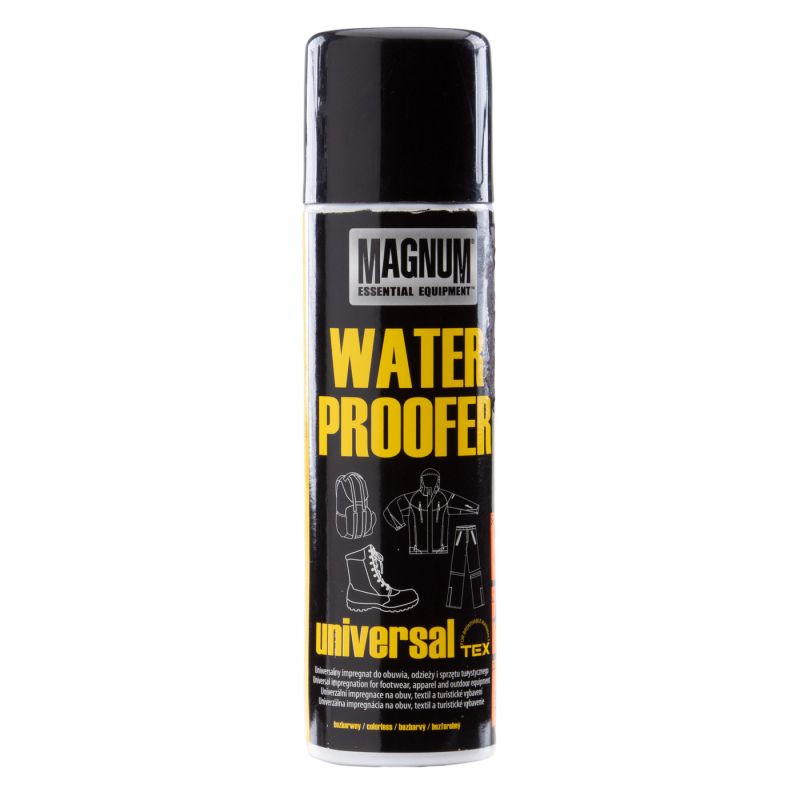 MAGNUM Imprägnierung sorgt dafür, dass Schuhe, Kleidung, Zelte und Rucksäcke länger wasserdicht bleiben. WATERPROOFER sorgt dafür, dass Sie, Ihre Füße und Ihre Ausrüstung bei Regen trocken bleiben. WATERPROOFER bildet eine unsichtbare, wasserdichte Schicht auf der Materialoberfläche und verhindert so das Eindringen von Wasser. Gleichzeitig bleiben Leder und Textilien atmungsaktiv, sodass sich Feuchtigkeit nicht im Inneren ansammelt und ungehindert verdunsten kann. Regelmäßig angewendet schützt es Schuhe und Ausrüstung vor Nässe, beugt übermäßiger Schmutzablagerung vor und erleichtert die Reinigung.
