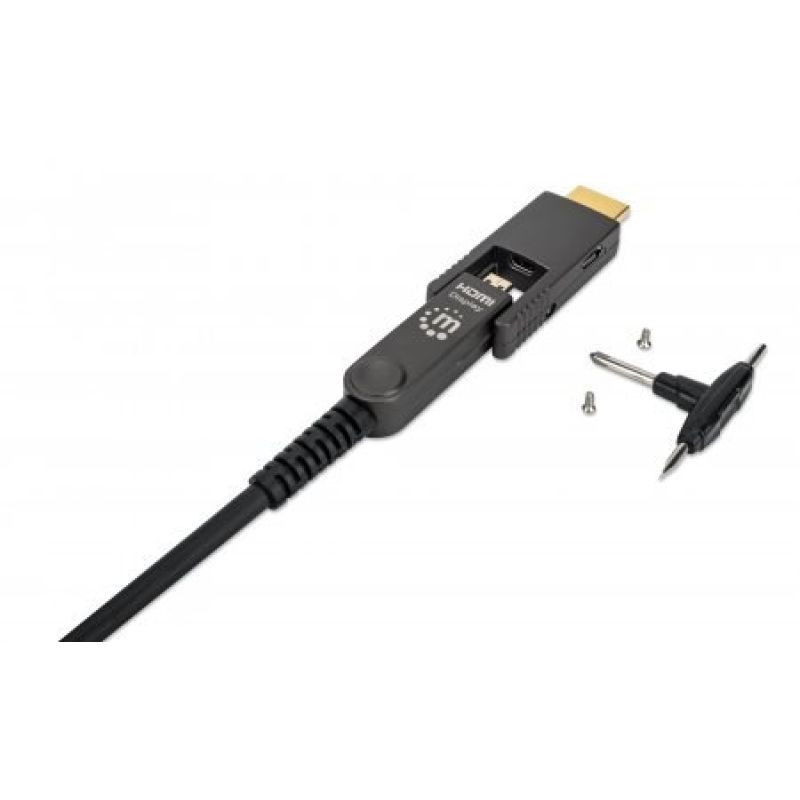 6. MANHATTAN Aktives High-Speed-HDMI-Glasfaserkabel mit abnehmbarem Stecker 4K@60Hz UHD, HDMI-Stecker auf Micro-HDMI-Stecker (Typ D) und abnehmbarer HDMI-Stecker (Typ A), 50 m, HEC, ARC, vergoldete Kontakte (355537)