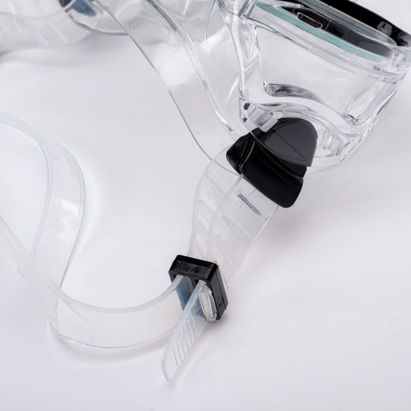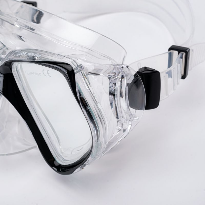 TAUCHSET GRÖSSE: ERWACHSENE MATERIALZUSAMMENSETZUNG: MASKE: RAHMEN: GEHÄRTETES GLAS DICHTUNGSKRAGEN: FLÜSSIGE SILIKON ÄUSSERER RAHMEN: PC INNERER RAHMEN: PC TAUCHSCHLAUCH: SCHLAUCH: PVC ANSCHLUSS: PVC MUNDSTÜCK: PVC KNOPF: PC WELLENBRECHER: PC SPEZIFIKATIONEN: - ZWEI LINSEN - GEHÄRTETES GLAS - WELLENBRECHER - EINFACHE EINSTELLUNG - BODENVENTIL